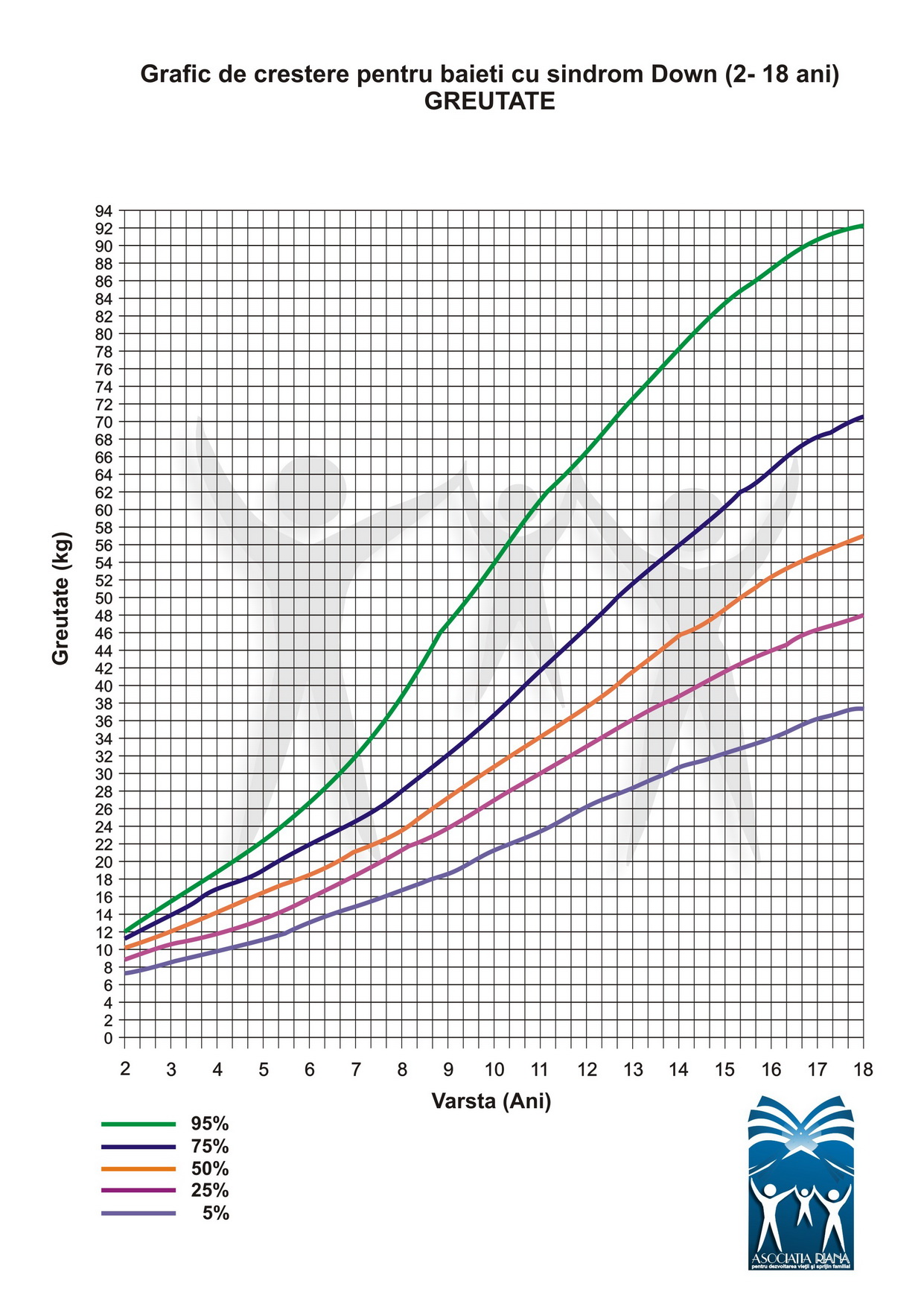 Graficele de creștere sunt o unealtă importantă de monitorizarea a dezvolatării copiilor cu sindrom Down, dar sunt doar una din multele metode folosite pentru a ne asigura că un copil crește și se dezvoltă normal. Puteți descarca graficele oferite de noi pentru a le printa și nota măsurătorile făcute la vizitele de rutină de la medic și orice nelămurire ați avea, discutați cu medical pediatru.